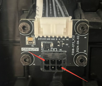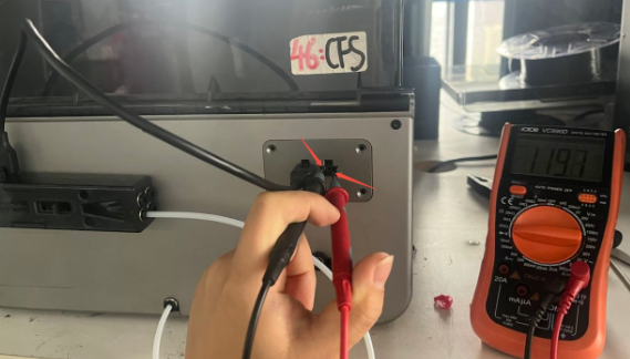 Power off the device. Use a multimeter to measure the resistance of the CFS 485 communication board. Normal resistance with the buffer connected should be around 120Ω. Without the buffer connected, normal resistance should be around 36kΩ. If the resistance is incorrect, check if the cable from the CFS mainboard to the CFS 485 communication board is properly plugged in. If there’s no problem, directly measure the pins of the cable (as shown in the image) to see if it’s around 36kΩ. If not, replace the CFS mainboard; if yes, replace the CFS 485 communication board.