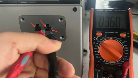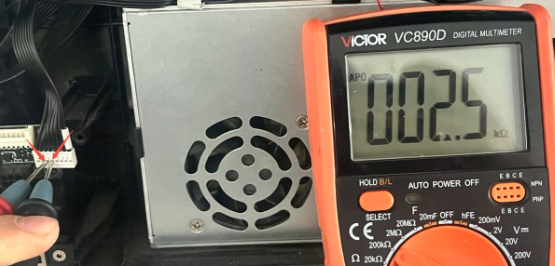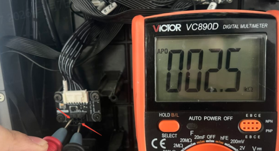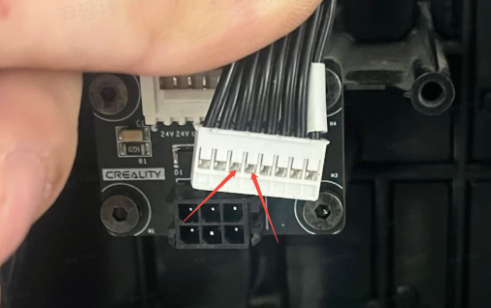 Power off the device. Use a multimeter to measure the resistance of the K2 Plus 485 communication board. Normal resistance should be around 2.5kΩ. If the resistance is incorrect, check if the cable from the K2 Plus lower computer mainboard to the K2 Plus 485 communication board is properly plugged in. If there’s no problem, directly measure the pins of the cable (as shown in the image) to see if it’s around 2.5kΩ. If there’s no 2.5kΩ, please replace the K2 Plus lower computer mainboard; if there is 2.5kΩ, you need to replace the K2 Plus 485 communication board.