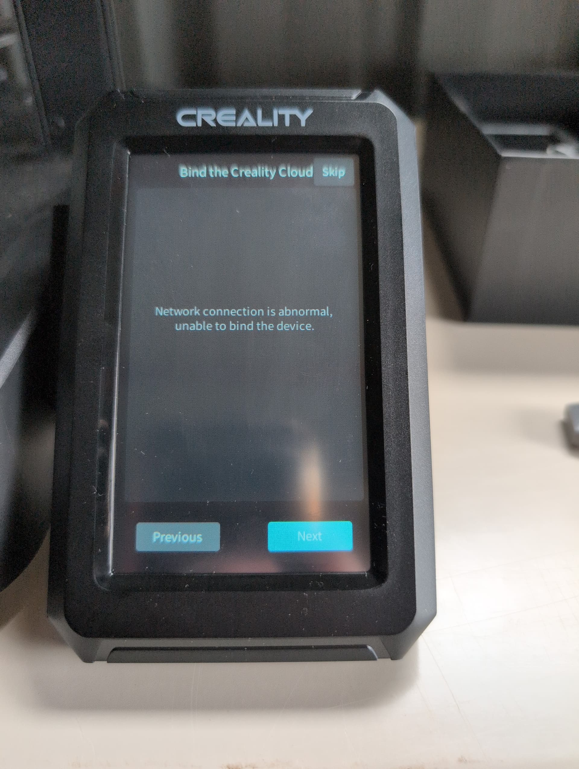 I’m upgrading my ender 3 v-3 se with a nebula smart kit. I have put the firmware that comes with the USB in the kit onto an SD card. I have plugged the screen in and get to this screen and my network doesn’t show up. All I get is this screen. I can skip or go next but once I choose my timezone then the model I get a whole bunch of these screens that just end up looping me back to the start and then back to the error messages.