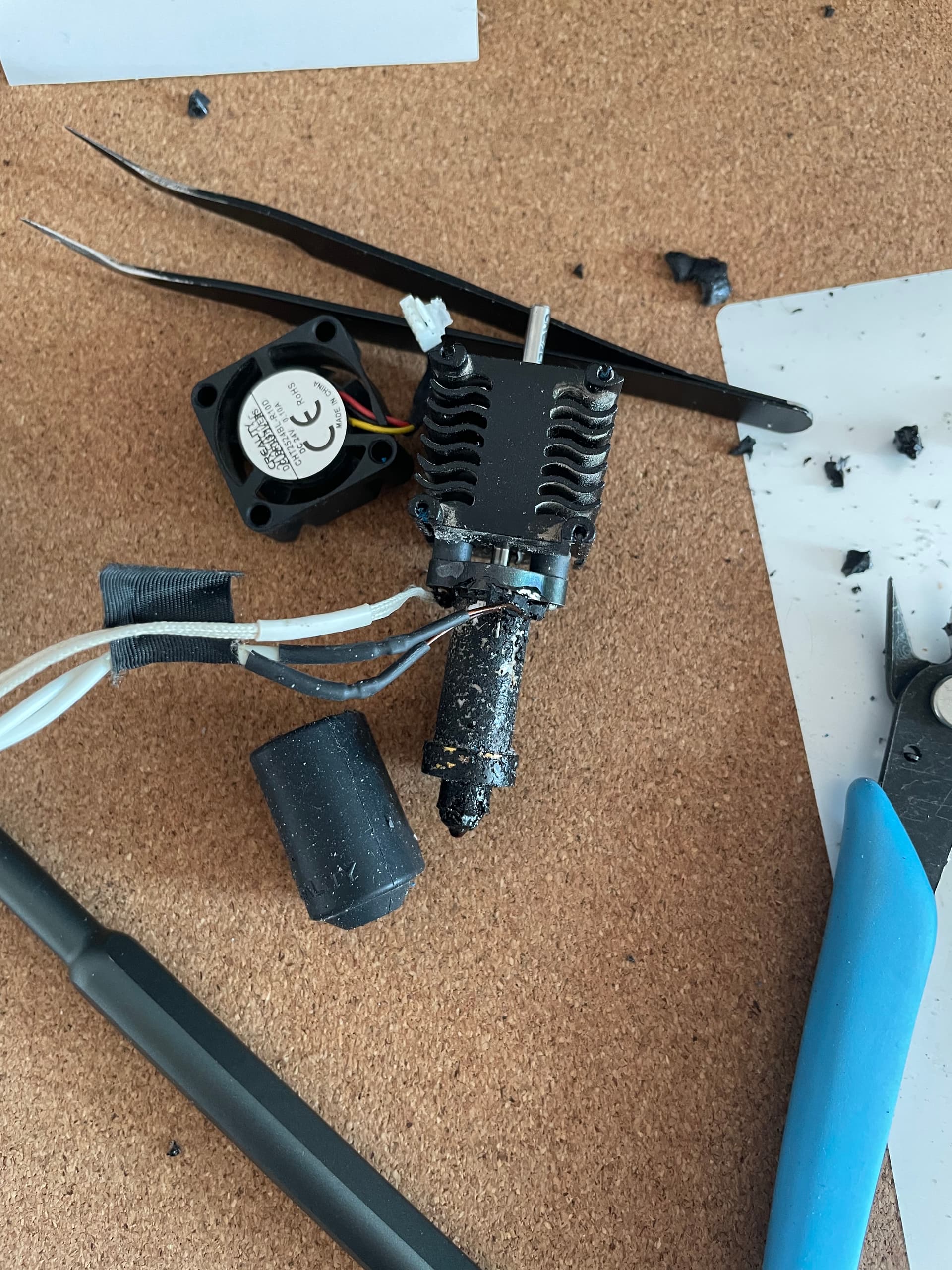 Eventually I decided to open the extruder and clean the nozzle. During cleaning I discovered that a previous filament blob incident had heavily contaminated the nozzle.